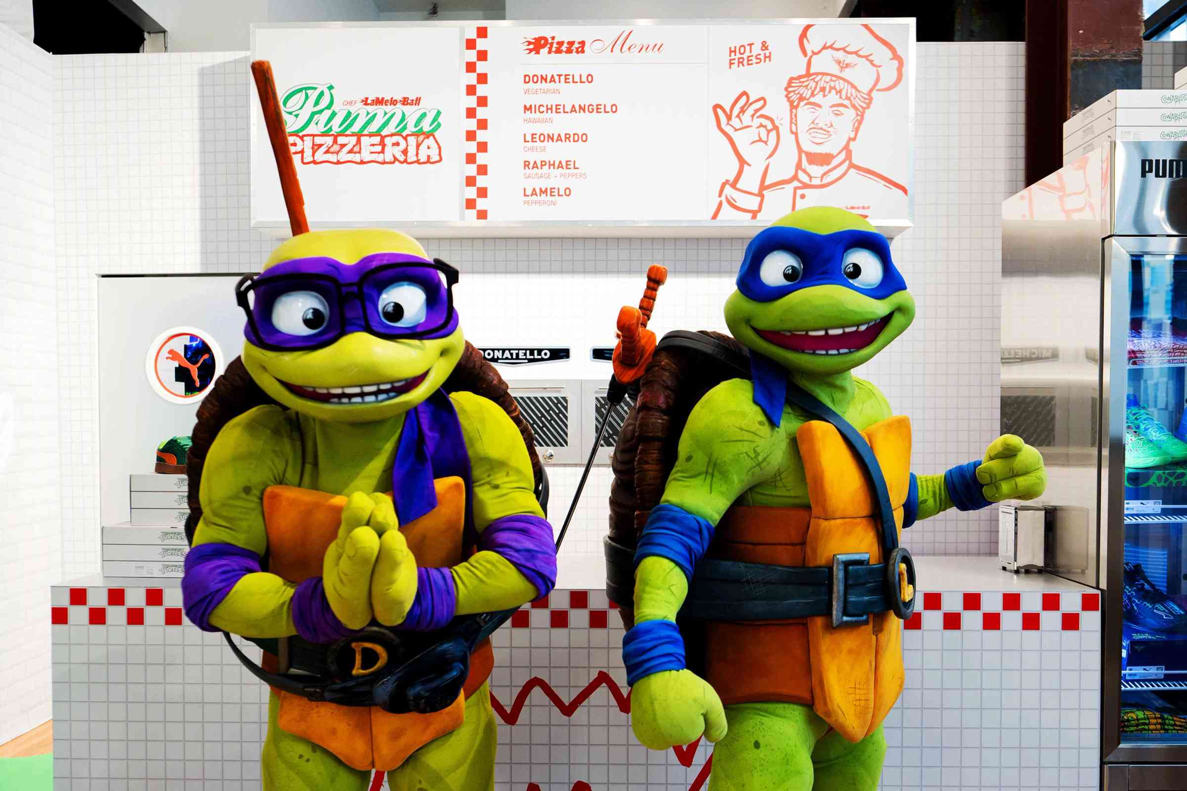 For the 2025 All-star Weekend we took the Turtles to the Bay. PUMA popped up a Pizzeria with 5 slices honoring the four turtles and Melo. Pizza was handed out free of charge to all patrons entering the shop. Breaking through the Pizzeria wall was Krang’s Court: Battle for the Bay, a skills challenge game, participants racked up points shooting and passing on the digital hoops. High scores gave participants access to the turtle apparel and shoes. Additionally, we created a custom seeding kit with all five pairs of the MB x TMNT collab that was sent to LaMelo, Neymar and a sneaker media outlet.